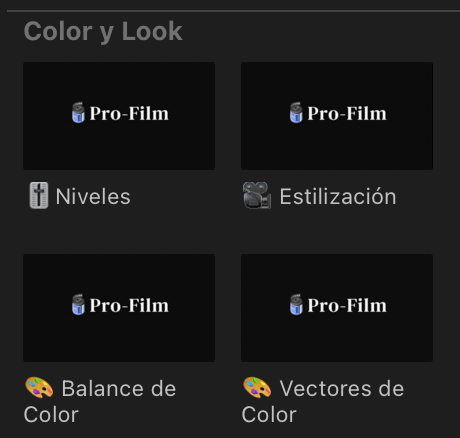 Pro-FILM es un conjunto de plugins y LUTS con una estructura modular que funcionan en Final Cut Pro desde la versión 10.5.