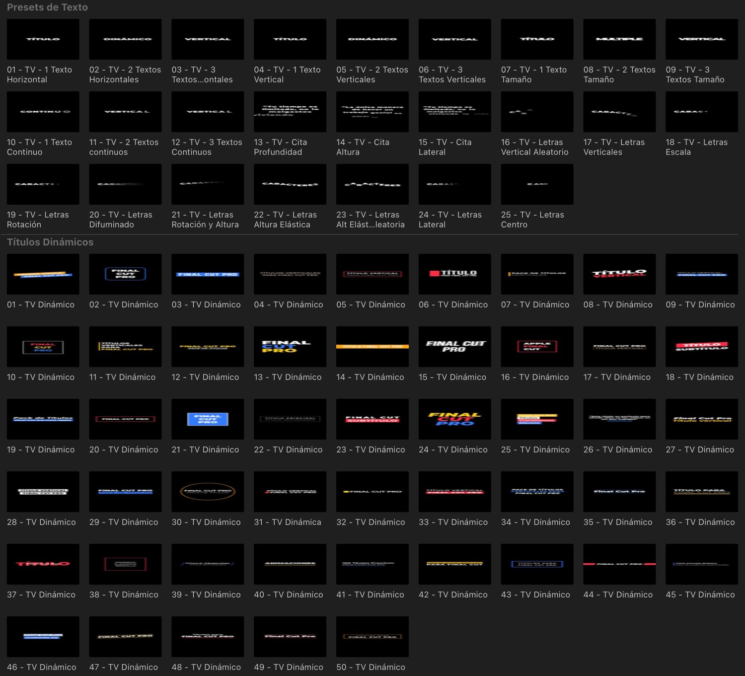 Un pack diseñado para la creación de video vertical en FCP compuesto por 75 Títulos, 105 Transiciones, 17 Herramientas variadas y 3 Overlays.